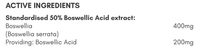 - Standardised 50% Boswellic Acid extract:
